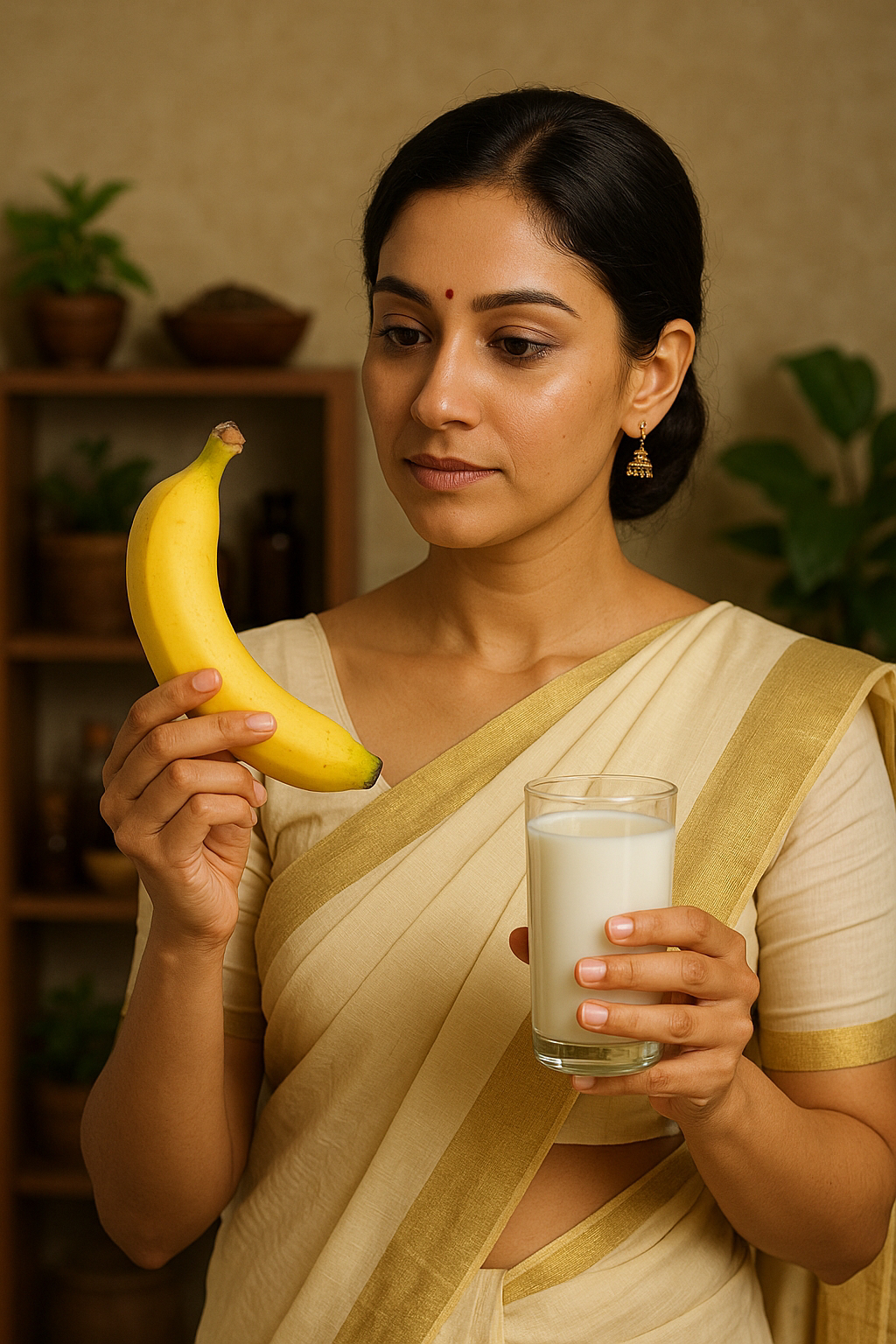 केला शरीर को ऊर्जा देता है और दूध शुक्र धातु को पुष्ट करता है। यह संयोजन वीर्य को गाढ़ा बनाता है, थकान मिटाता है और यौन शक्ति को नैसर्गिक रूप से बढ़ाता है।